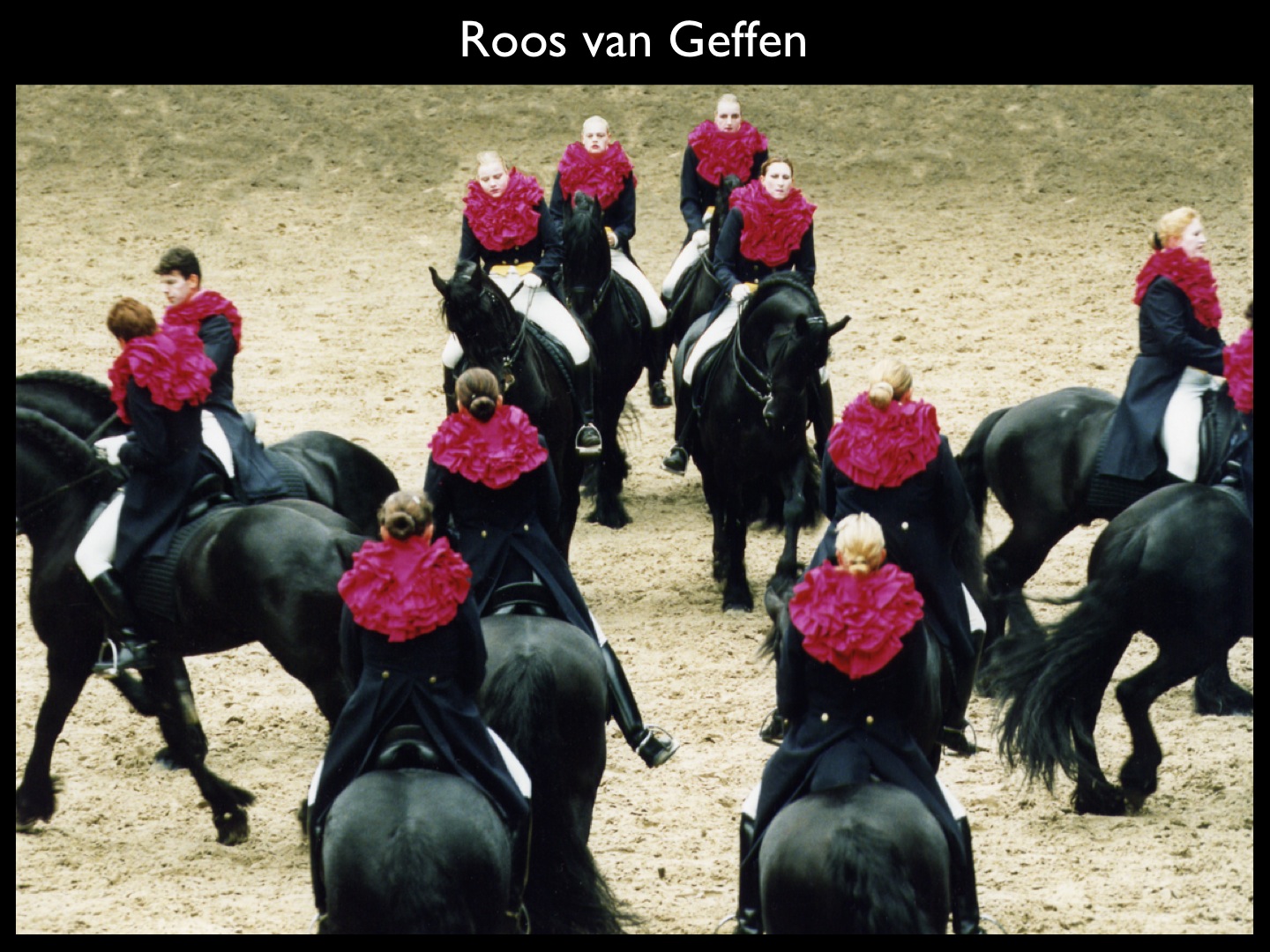 From 1997 Roos van Geffen has been making autonomous installations and performances for various European festivals and organisations including The Summer of Antwerp in Belgium, Theaterfestival Boulevard in Den Bosch, Netherlands, Oerol Festival, Festival VEO in Valencia, Spain, Battersea Arts Centre in London and others.