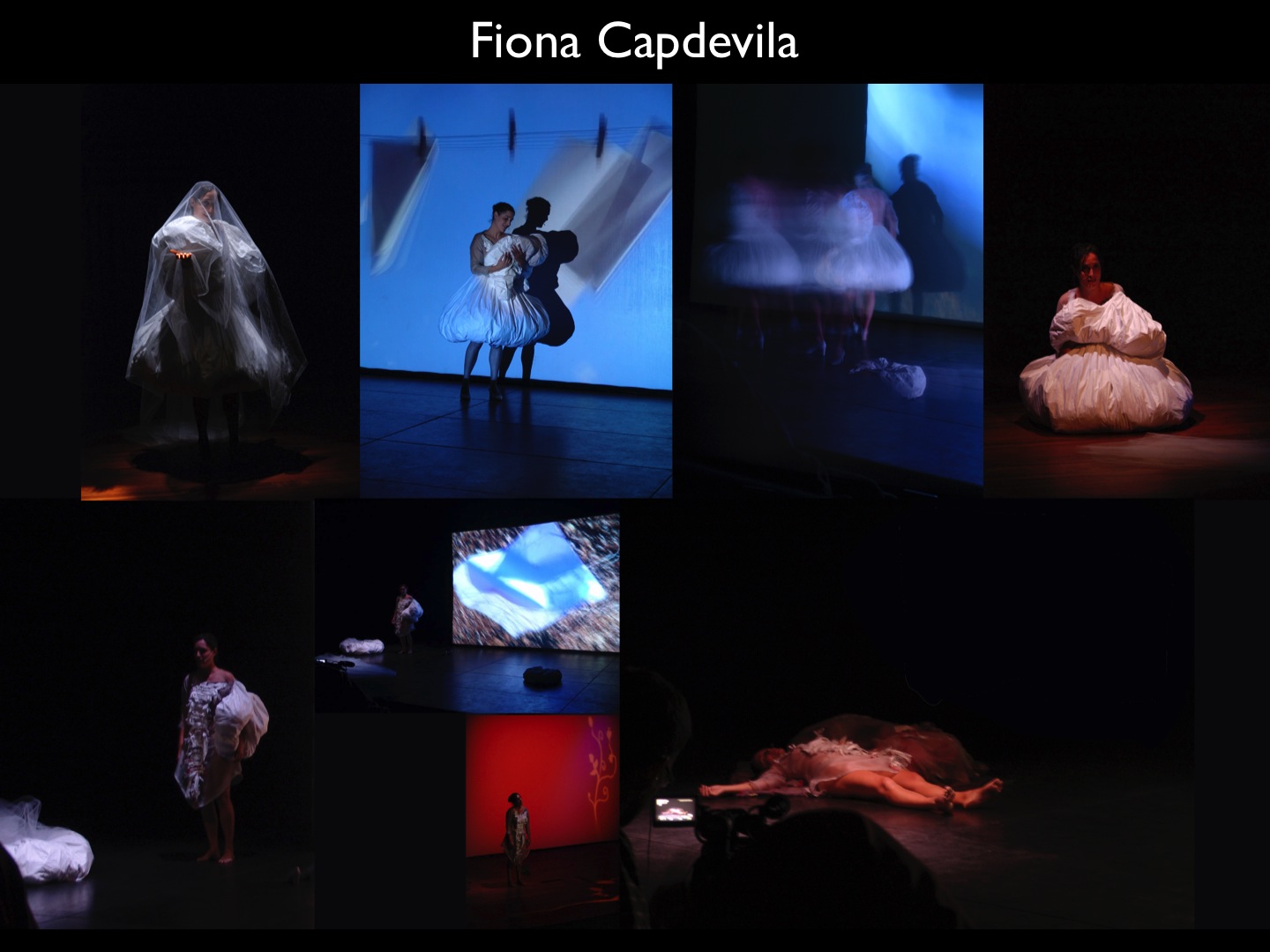 This costume work was part of a collective creation for the show "To Sylvia Plath", in wich we immersed ourselves in the profoundness of the soul of the dramatic poetess. In my work I wanted to capture the inner process of gradual disintegration of her soul with the tragical beauty that her poetry transmitted me. Materially, I used unwanted materials as plastics and newspapers, but also specific ones as silk organza because of its transparency, and Tyvek, a material used to build comets.